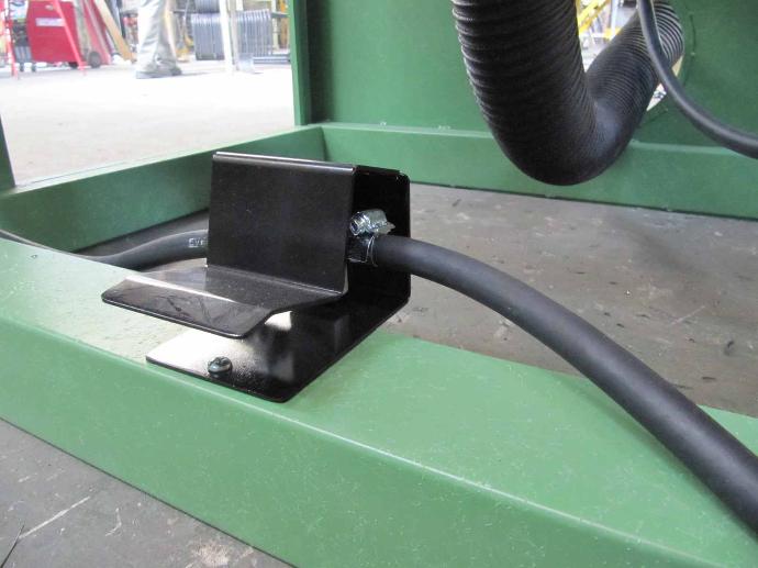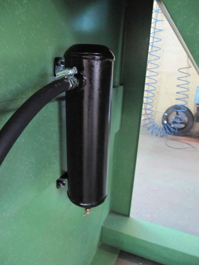El accionamiento de la pistola proyectora se realiza por medio de un pedal, lo que permite al operario disponer de ambas manos libres para el movimiento de la pieza de trabajo y el manejo de la pistola dentro de la cabina. Ésta última cuenta con un filtro que elimina la humedad presente en el circuito de aire comprimido.